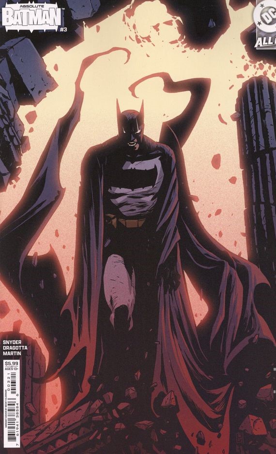 Written by Scott Snyder. Art by Nick Dragotta. Cover by Nick Dragotta. BATMAN LEGEND SCOTT SNYDER AND ICONIC ARTIST NICK DRAGOTTA TRANSFORM THE DARK KNIGHT’S TALE FOR THE MODERN AGE! Without the mansion…without the money…without the butler…what’s left is the Absolute Dark Knight!