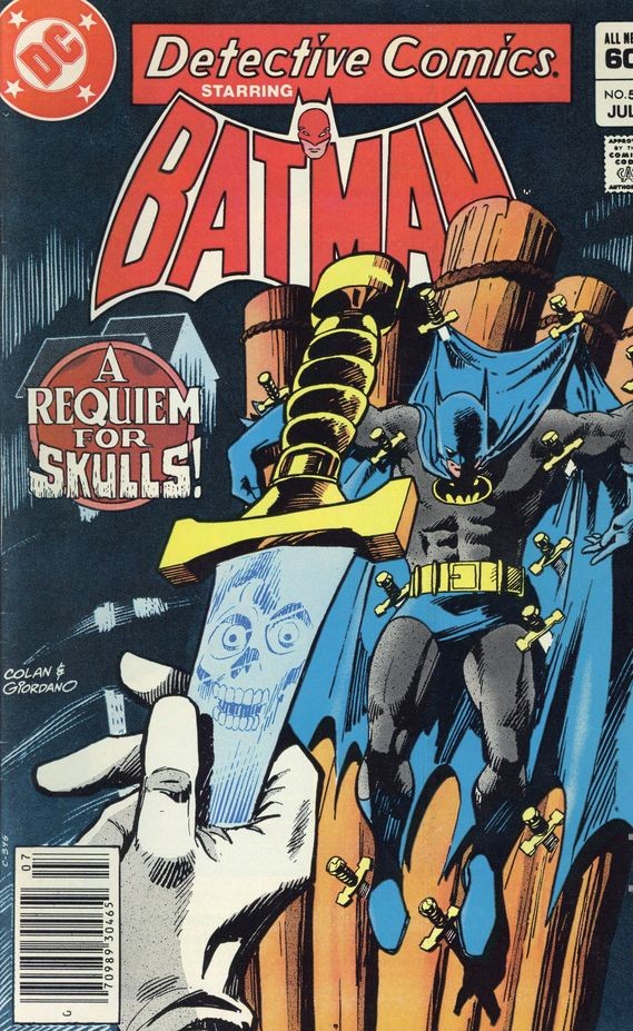 Cover pencils by Gene Colan, inks by Dick Giordano. “Requiem for Skulls,” script by Doug Moench, pencils by Gene Colan, inks by Klaus Janson; Batman has a return engagement with the Savage Skull, while Harvey Bullock makes trouble for Commissioner Gordon. “Getting Up II: Poisoned Art,” script by Joey Cavalieri, pencils by Paris Cullins, inks by Pablo Marcos; Green Arrow saves himself by aiming the spray can at the ground and propelling himself back through the window; The man who exchanged canisters with Ozone tries to take his can back at gunpoint, but Green Arrow captures the man and Ozone escapes. 36 pgs.