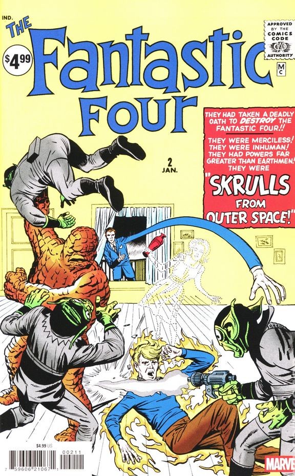 Written by Stan Lee. Art by Jack Kirby. Cover by Jack Kirby. The Fantastic Four face the menace of the Miracle Man! In the third issue of Stan Lee and Jack Kirby’s foundational, Marvel Universe-building FF run, the First Family adopt their iconic blue uniforms – and take to the skies in the Fantasti-car! But just how long is the ever-lovin’ Thing going to hide his rocky skin beneath an all-over bodysuit and helmet? Not long, when a towering monster threatens Manhattan – courtesy of the master hypnotist known as the Miracle Man! Can Reed, Sue, Ben and Johnny defy his illusions and put an end to his campaign of terror? Or will the tempestuous team be torn apart? It’s one of the all-time great Marvel comic books, boldly re-presented in its original form, ads and all! Reprinting FANTASTIC FOUR (1961) #3. 32 pages, full color.