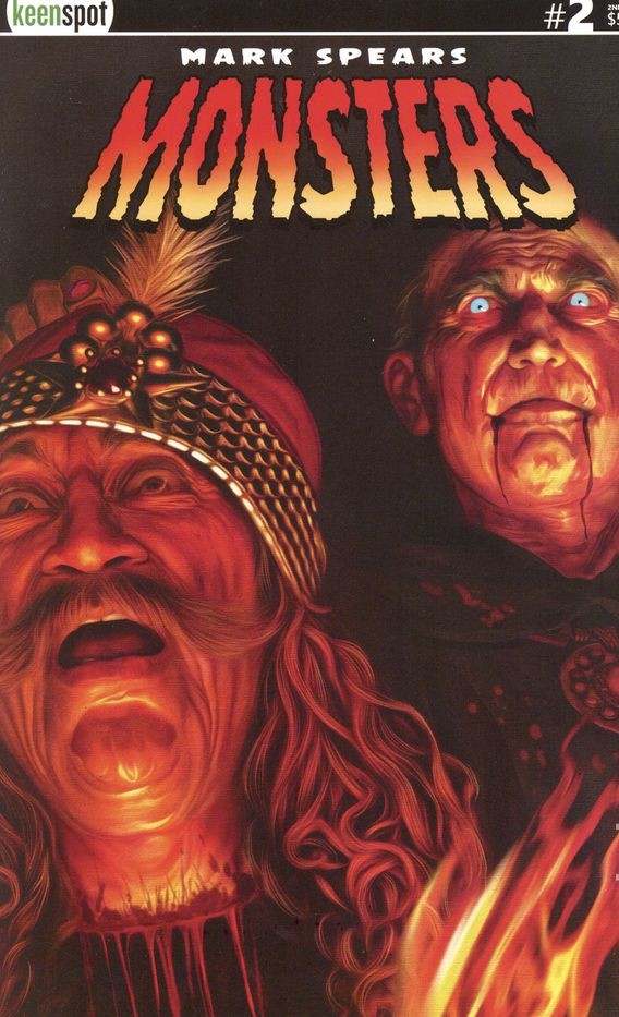 Written by Mark Spears. Art and Cover by Mark Spears. From the hit trading card series Mark Spears Monsters, superstar cover artist Mark Spears (Spawn, DC, Power Rangers) has created, written, and illustrated this terrifying tale. In this spine-chilling second issue, ruthless terrorist group The Overmen launch a daring infiltration of a heavily-guarded military complex, retrieving an ancient and powerful artifact known as the Witch Stone. Amidst the chaos, the Monster Slayer seeks a meeting with an old adversary, determined to uncover the fate of his missing friend.