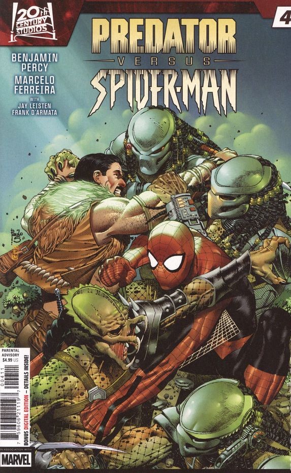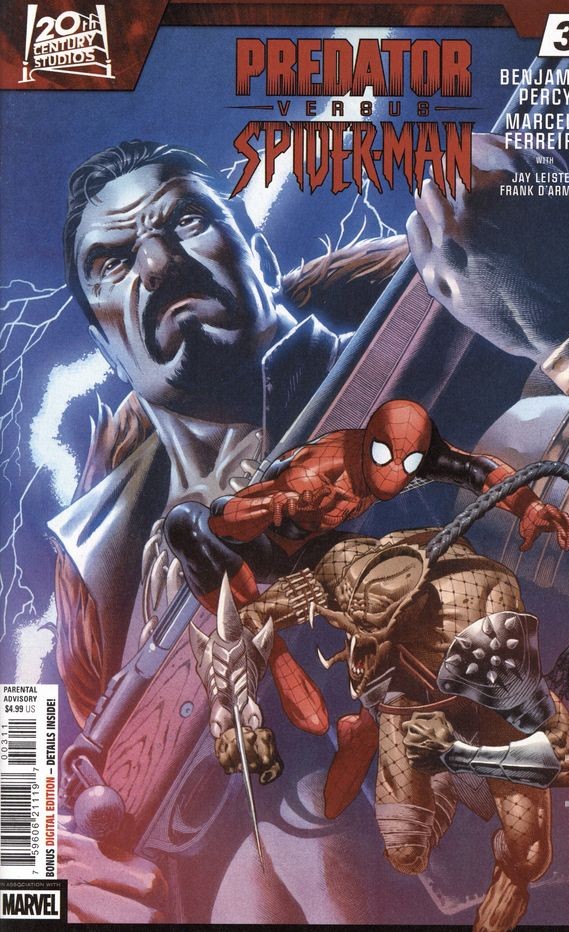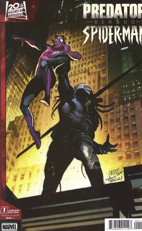 Written by Benjamin Percy. Art by Marcelo Ferreira. Cover by Pepe Larraz. TARGET: SPIDER-MAN IN PREDATOR’S GRITTIEST SERIES YET! In Predator vs. Wolverine, we saw a single Predator stalk Earth’s greatest prey, the killing machine Wolverine. In Predator vs. Black Panther, Yautja invaded Wakanda and nearly dethroned its king. Now Ben Percy turns his twisted brain to Marvel’s most beloved property: Spider-Man! A heat wave sends NYC into a blackout and Spider-Man on patrol as tempers boil across the city. But beneath its grimy sewers and subways lurks a threat unlike anything Peter Parker has faced before. Introducing “Skinner,” a Predator of no honor and no clan – only a thirst for blood. Exquisitely rendered by superstar artist Marcelo Ferreira!