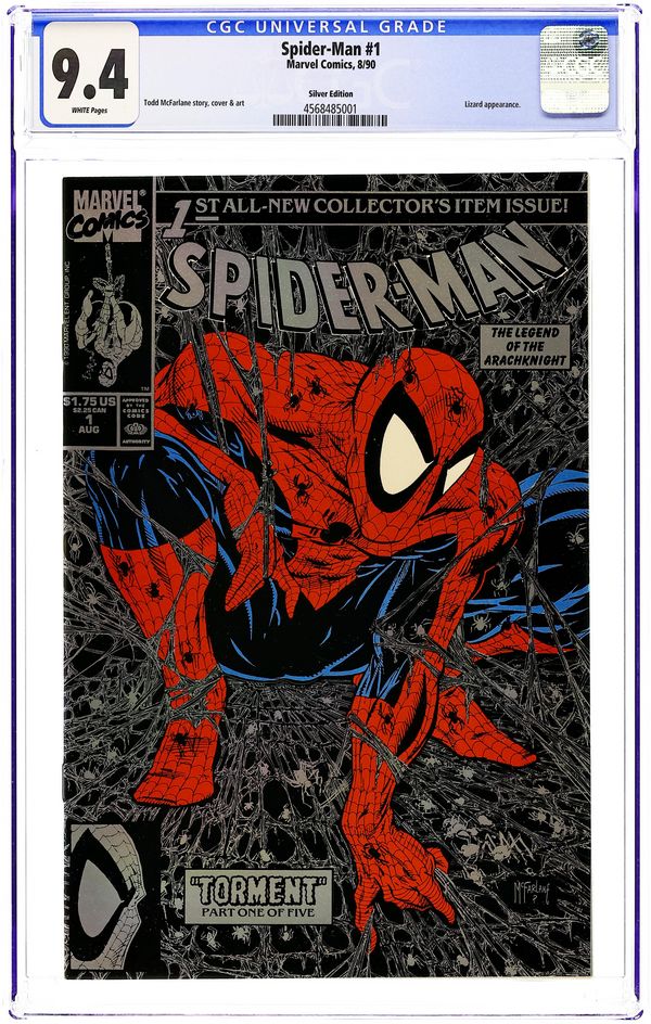 Torment” Script and art by Todd McFarlane. Cover by Todd McFarlane. Fresh off his legendary run on the Amazing Spider-Man series, superstar artist Todd McFarlane takes the reins of his own Spider-title! Right off the bat the breathtaking action begins as mysterious and ominous drums awaken the Lethal Lizard! And send the reptilian creature on a path of death and destruction thru New York City! Spider-Man’s nightmare is just starting!