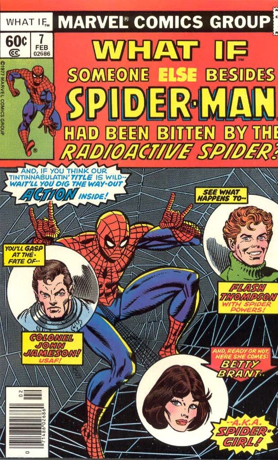 “What If Someone Else Had Become Spider-Man?” Script by Don Glut, pencils by Rick Hoberg, inks by Sam Grainger. Betty Brant, Flash Thompson, and Col. John Jameson each get bitten by a radioactive spider! On the letters page, editor Roy Thomas lists about 50 possible “What If” stories for the future and asks readers to pick three choices. See which ideas have been published since this 1978 issue. Gil Kane/Joe Sinnott cover.