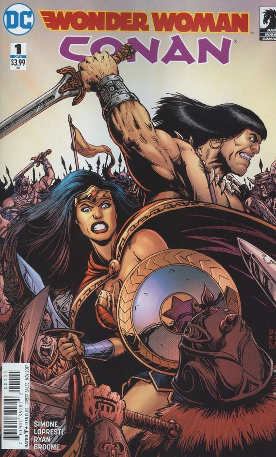 Written by Gail Simone. Art by Aaron Lopresti and Matt Ryan. Cover by Darick Robertson. What makes one a legend? How do legends carve their names into history, when countless others are forgotten? Wonder Woman and Conan the Barbarian are destined by the fates to be legendary, but when their stories collide, will both emerge victorious, or will the fickle Gods cut their lives short? Co-published with Dark Horse Comics